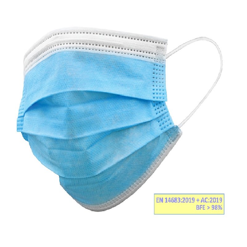 MASCHERINA CHIRURGICA CON ELASTICI 3 VELI TIPO IIR 50 PZ