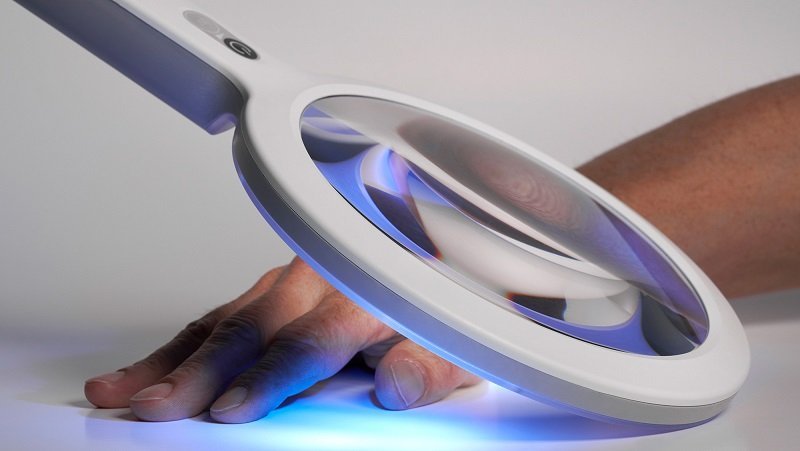 La lente manuale da 3,5 diottrie consente una visione dettagliata, mentre la modalità Wood’s Light permette l’analisi della pelle o materiali specifici.